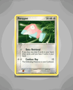 Porygon is an Uncommon card from the FireRed LeafGreen set, numbered 47. It features 50 HP and a unique attack called Confuse Ray. This digital Pokémon offers a distinctive addition to any collection with its intriguing design and strategic move.