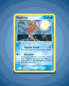 Magikarp is a common Pokémon card from the FireRed LeafGreen set, numbered 67. This card features a modest 30 HP and a single attack called Surprise Attack. Its simple design reflects the early stages of this iconic Pokémon’s journey.