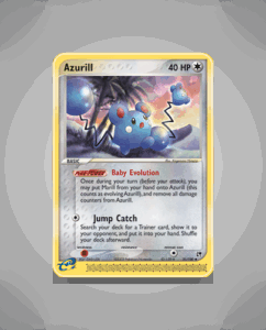 Azurill from the Sandstorm set is an uncommon card with 40 HP. This lively Pokémon features the Baby Evolution ability and the Jump Catch attack. It is card number 31 in the set.