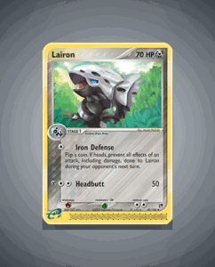 Lairon is an Uncommon card from the Sandstorm set, numbered 41. It has a sturdy 70 HP and features the attack Headbutt. This solid Pokémon offers straightforward gameplay with its single, reliable move.