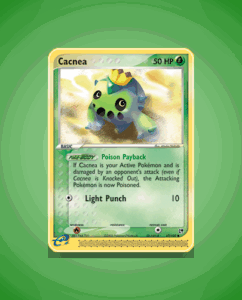 Cacnea is a Common Pokémon from the Sandstorm set, numbered 57. It has 50 HP and features the ability Poison Payback. Its attack is called Light Punch, making it a straightforward choice for basic strategies.