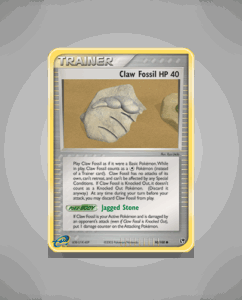 Claw Fossil is a Common card from the Sandstorm set, numbered 90. It has 40 HP and features the ability Jagged Stone. This modest yet intriguing card adds a unique element to any collection.