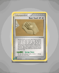 Root Fossil is a Common card from the Sandstorm set, numbered 92. It features a modest 40 HP and the unique ability Spongy Stone. This card offers a distinctive addition to any collection with its simple yet intriguing design.