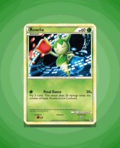 Roselia from the HS Unleashed set is a Common card numbered 61 with 60 HP. This vibrant Pokémon features the attack Petal Dance, adding a lively touch to gameplay. Its straightforward design makes it a charming addition for collectors.
