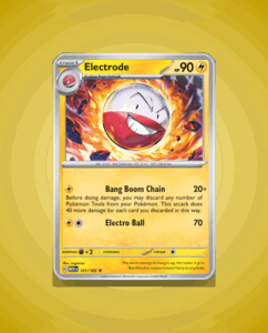 Electrode from the 151 set is a rare card featuring 90 HP. This energetic Pokémon wields the attack Electro Ball, making it a notable addition for collectors. It is card number 101 in the set.