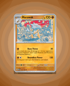 Marowak from the 151 set is a Rare card with 120 HP. It features the striking attack Boundless Power. This card is numbered 105 in the collection.