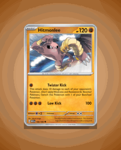 Hitmonlee from the 151 set is an uncommon card featuring a robust 120 HP. It showcases the straightforward attack Low Kick, emphasizing its martial prowess. This card holds a solid place in any collection focused on classic Pokémon.