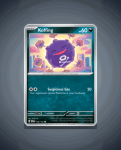 Koffing is a Common card from the 151 set, numbered 109. It has 60 HP and features the attack Suspicious Gas. This card offers a straightforward addition to any collection.