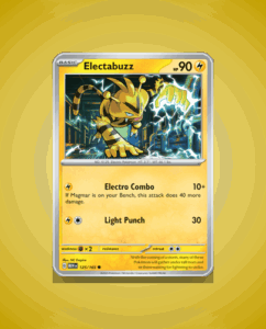 Electabuzz from the 151 set is a common card numbered 125 with 90 HP. This energetic Pokémon features a straightforward attack called Light Punch. Its design captures the dynamic essence of Electabuzz in battle.