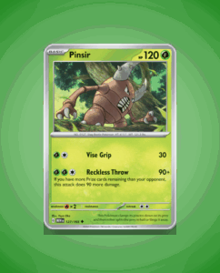 Pinsir from the 151 set is an uncommon card with 120 HP. It features the dynamic attack Reckless Throw. This card is numbered 127 in the set.