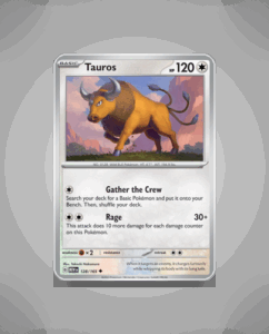 Tauros is an Uncommon card from the 151 set, numbered 128. This lively Pokémon boasts 120 HP and features the attack Rage. Its straightforward design makes it a solid addition for collectors seeking classic energy.