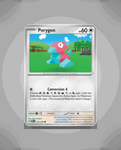 Porygon from the 151 set is a Common card numbered 137 with 60 HP. It features the unique attack Conversion 4, adding strategic depth to gameplay. This digital-themed Pokémon stands out with its straightforward design and solid stats.