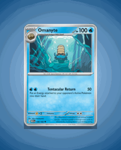 Omanyte from the 151 set is a striking Illustration Rare card numbered 180. It features 100 HP and a unique attack called Tentacular Return. This card stands out for its detailed artwork and solid gameplay attributes.