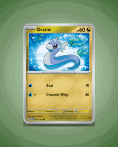Dratini is a Common card from the 151 set, numbered 147. It has 60 HP and features the attack Draconic Whip. This card offers a straightforward addition to any collection with its classic design.