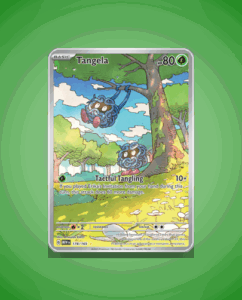Tangela from the 151 set is a striking Illustration Rare card numbered 178. It features 80 HP and a unique attack called Tactful Tangling. This card’s vivid design stands out among collectors for its intricate artwork.