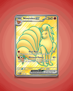 Ninetales ex from the 151 set is an Ultra Rare card boasting a striking 260 HP. This elegant Pokémon features the powerful attack Mirrored Flames. Its card number is 186, making it a notable addition for collectors.
