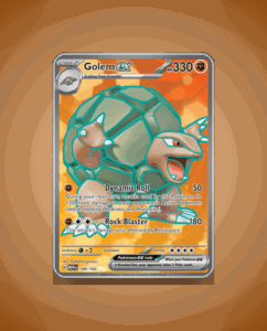 Golem ex from the 151 set is an Ultra Rare card boasting a robust 330 HP. This powerful Pokémon features the dynamic attack Rock Blaster, making it a notable addition to any collection. Its striking design and high HP make it stand out among other…
