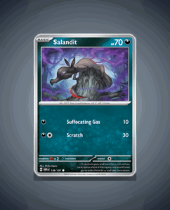 Salandit is a common Pokémon card from the Obsidian Flames set, numbered 139. It has 70 HP and features the straightforward attack Scratch. This modest card offers a simple yet lively addition to any collection.