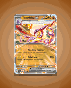 Toxtricity ex from the Paradox Rift set boasts a striking 260 HP, making it a formidable presence in any deck. This Double Rare card features the powerful attack Gaia Punk, adding a dynamic edge to gameplay. Numbered 100 in the set, it stands out with…