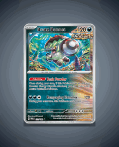 Brute Bonnet is a Rare card from the Paradox Rift set, numbered 123. It boasts 120 HP and features the ability Toxic Powder, adding strategic depth to gameplay. Its attack, Rampaging Hammer, offers a straightforward offensive option for players. This card combines solid stats with…