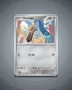 Honedge is a Common Pokémon card from the Paradox Rift set, numbered 130. This 60 HP card features the attack Cut Up. Its straightforward design makes it a notable addition for collectors focusing on this set.