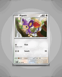 Aipom from the Paradox Rift set is a Common card with 60 HP. This lively Pokémon features the straightforward attack Smack. It is card number 145 in the set.