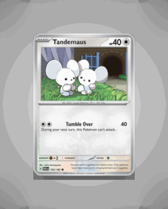 Tandemaus is a Common Pokémon card from the Paradox Rift set, numbered 154. It features a modest 40 HP and a single attack called Tumble Over. This card offers a straightforward addition to any collection.
