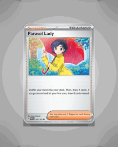 Parasol Lady is a common card from the Paradox Rift set, numbered 169. This character adds a subtle charm to any collection with its straightforward design. Despite lacking attacks or abilities, Parasol Lady holds a unique place in the set’s lineup.