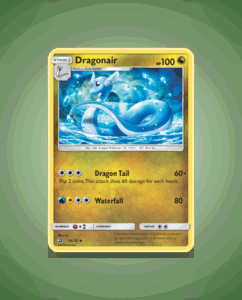 Dragonair from the Dragon Majesty set is an uncommon card numbered 36. It features 100 HP and a single attack called Waterfall. This sleek, serpentine Pokémon offers a straightforward yet engaging addition to any collection.