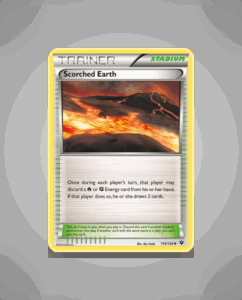 Scorched Earth is an uncommon card from the Fates Collide set, numbered 110. Its design captures the intense, fiery terrain that challenges Pokémon in battle. This card offers a unique addition for collectors seeking vibrant landscapes within the set.