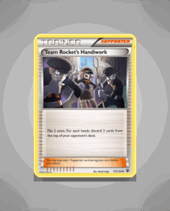 Team Rocket’s Handiwork is an Uncommon card from the Fates Collide set, numbered 112. This card captures the mischievous essence of Team Rocket within a vibrant design. It offers collectors a unique piece from this dynamic expansion.