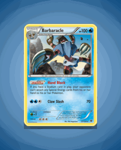 Barbaracle from the Fates Collide set is a rare card numbered 23 with 100 HP. It features the ability Hand Block and the attack Claw Slash. This card offers a solid combination of defensive and offensive options for strategic play.