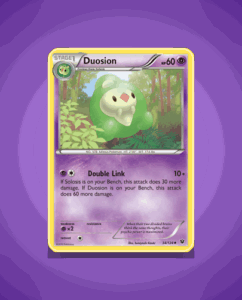 Duosion from the Fates Collide set is an uncommon Pokémon card with 60 HP. It features the attack Double Link, offering strategic play options. Numbered 34 in the set, this card adds a unique element to any collection.