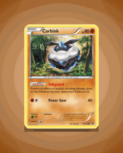 Carbink from the Fates Collide set is a common Pokémon card with 90 HP. It features the ability Safeguard and the attack Power Gem. This card is numbered 50 in the set.