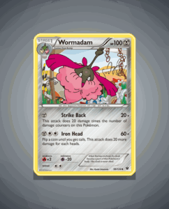 Wormadam from the Fates Collide set is an uncommon card numbered 59 with 100 HP. This sturdy Pokémon features the attack Iron Head, adding a solid option to your deck. Its balanced stats make it a reliable choice for various strategies.