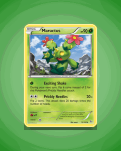 Maractus from the Flashfire set is an uncommon Pokémon card with 90 HP. It features the attack Prickly Needles, showcasing its distinctive battle style. This card is numbered 10 in the set.