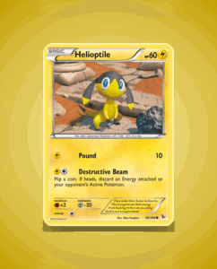 Helioptile is a common Pokémon card from the Flashfire set, numbered 36. It has 60 HP and features the straightforward attack Pound. This card offers a simple yet charming addition to any collection.