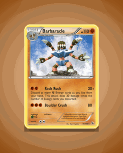 Barbaracle from the Flashfire set is a Rare card numbered 49. It boasts 110 HP and features the powerful attack Boulder Crush. This striking card offers a solid addition to any collection.