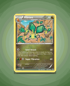 Vibrava from the Primal Clash set is an uncommon Pokémon card with 80 HP. It features the attack Super Vibration, adding a dynamic edge to gameplay. This card is numbered 109 in the set.