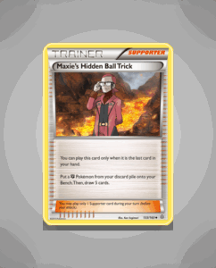 Maxie’s Hidden Ball Trick is an Uncommon Trainer card from the Primal Clash set. It carries the number 133 in the collection. This card adds a strategic element to gameplay with its intriguing design.